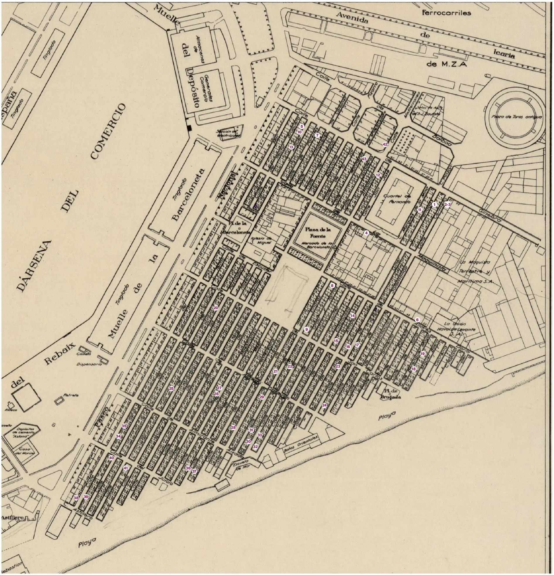 D’aquesta manera, hem utilitzat un altre sistema per corroborar la versemblança de l’habitatge d’aquests milicians al barri: la consulta del número del carrer en què vivien. Amb la planimetria que hem consultat del 1935 sabem amb certa precisió la xifra exacta de números que hi havia a cadascun dels carrers del barri. D’aquesta manera, quan ens hem topat amb un milicià que afirmava tenir la residència al carrer Sant Carles, 150, hem descartat la seva ubicació a la Barceloneta, perquè segons els plànols de l’època el carrer Sant Carles només tenia 39 números.